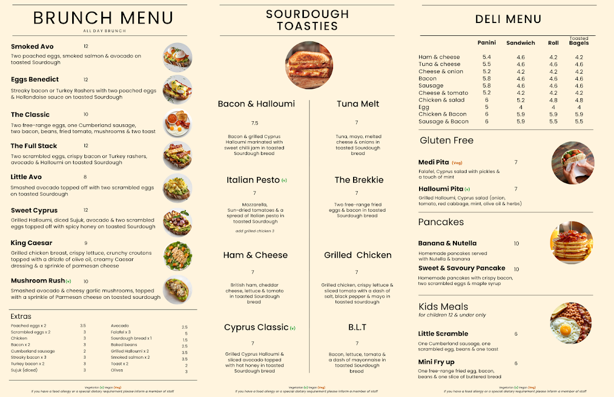 - Kids Meals: Simple and child-friendly dishes such as the Little Scramble, Toasted Sujuk Simit, and Mini Fry Up.